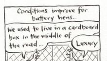 You might have seen the mural in La Trobe Street – a stretch of wall near Swanston Street painted with sad grey battery hens wearing fast food boxes over their heads: a sly shot at the burger chains, the submarine sandwich sellers and the peri peri chicken grillers. A hashtag in one corner, #fixfastfood, clues you in…